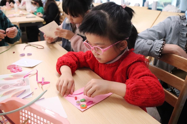 衍紙小手工美術(shù)活動(dòng)課上,劉美嫻老師指導(dǎo)孩子們用衍紙卷出自己的作品,孩子們無(wú)拘無(wú)束地創(chuàng)作衍紙作品。衍紙?jiān)谑郑兓療o(wú)限的可能。