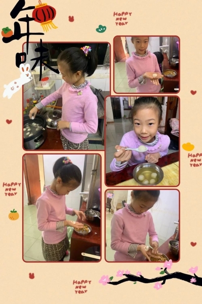 元宵節(jié)吃湯圓的習俗流傳已久,正月十五吃元宵是我國由來已久的節(jié)日習俗,元宵又稱為“湯圓”,它飄在碗里,像是一輪明月掛在天際。天上月圓,碗里湯圓,家人團圓,以象征團圓吉利之意。學生和家人們用各種材料做元宵、吃元宵,品嘗生活的幸福與甜蜜。