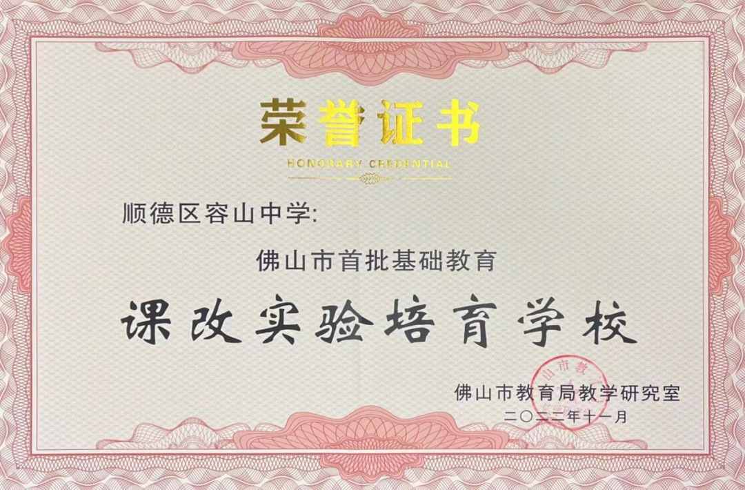 為深化新時期課程教學改革,落實立德樹人根本任務,根據(jù)《佛山市教育發(fā)展“十四五”規(guī)劃》精神,積極推進“一三六九”工程”,深化基礎教育課程教學改革,全力打造佛山“五好教育”新形態(tài),推進“佛山市首批基礎教育課改實驗項目?!钡穆鋵崱8鶕?jù)《關于遴選認定佛山市首批基礎教育課改實驗項目校的通知》,經(jīng)學校自主申報、市教研室組織專家遴選,認定首批項目培育學校。容山中學被認定為佛山市首批基礎教育課改培育學校!