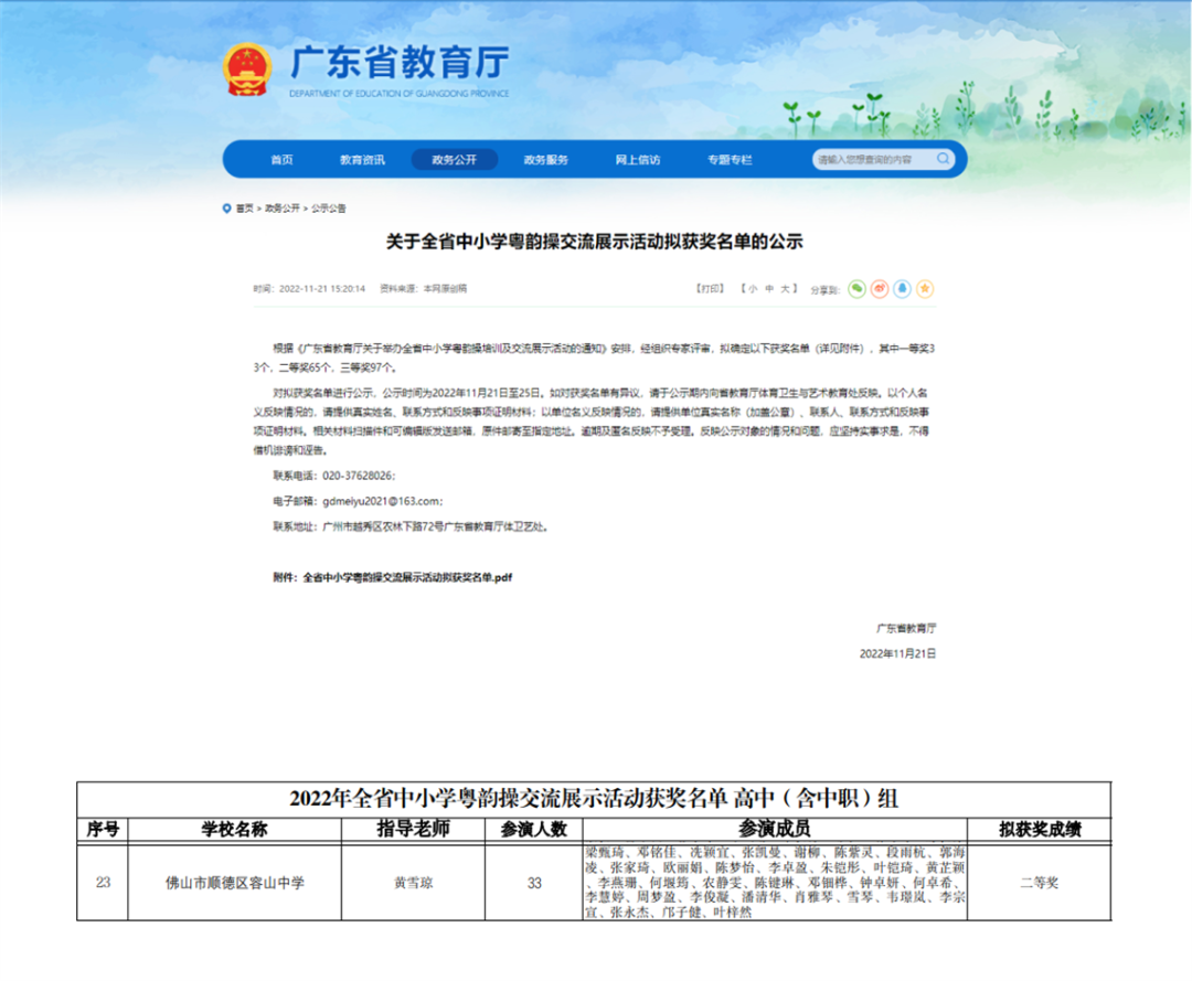 向美而行,以美育人。繼上個(gè)月容山中學(xué)榮獲佛山市中小學(xué)粵韻操交流展示活動(dòng)特等獎(jiǎng)后,我校美育再傳捷報(bào)!近日,容山中學(xué)再獲2022年全省中小學(xué)粵韻操培訓(xùn)及交流展示活動(dòng)二等獎(jiǎng)!