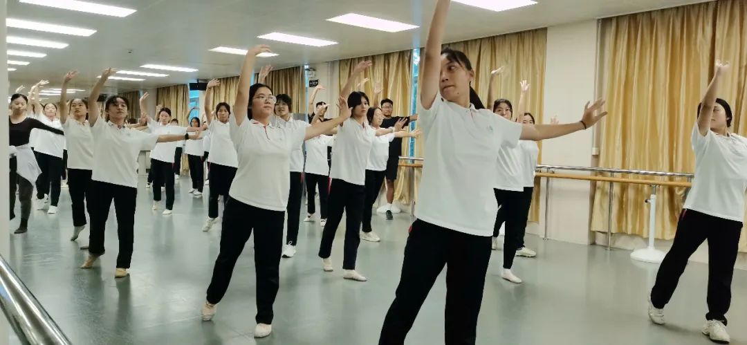 一開(kāi)始有些擔(dān)心自己是否有這樣的能力完成比賽任務(wù),但在訓(xùn)練的過(guò)程中,大家互相幫助,一起討論動(dòng)作,一起玩耍。大家上一秒還在嘻嘻哈哈,下一秒就進(jìn)入狀態(tài)。每當(dāng)老師講評(píng)一些動(dòng)作時(shí),每個(gè)人都在認(rèn)真聽(tīng)講,舞蹈室靜得只剩老師的聲音,因?yàn)榇蠹叶贾罆r(shí)間的緊迫。訓(xùn)練的同時(shí),我們學(xué)業(yè)也沒(méi)有落下。我們?cè)谟?xùn)練完后會(huì)聚在一起寫(xiě)作業(yè),遇到不懂的知識(shí)點(diǎn),會(huì)互相講解。老師也會(huì)利用空余時(shí)間幫我們補(bǔ)課。讓我們?cè)谟?xùn)練的同時(shí)不會(huì)擔(dān)心學(xué)習(xí)。訓(xùn)練時(shí)間雖短,但我們付出的時(shí)間與精力不少,同時(shí)收獲(友誼、舞蹈知識(shí)等)也不少,感謝老師對(duì)我們的悉心輔導(dǎo)!——何堰筠 同學(xué)