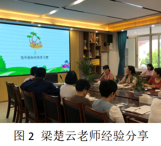 分享會上,梁楚云老師結合自己的實際工作和真實的教育案例,分別從不同的角度分享了如何讓低年級學生養(yǎng)成良好的學習習慣、生活習慣和行為習慣,如何跟家長建立良好的溝通,面對特殊學生應該怎么教育等經(jīng)驗做法。