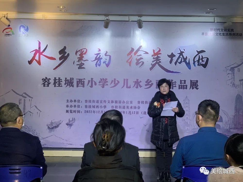 隨后是廣東省美術(shù)家協(xié)會理事,廣東省中國畫學(xué)會理事,粵港澳大灣區(qū)美術(shù)聯(lián)盟理事,佛山市美術(shù)家協(xié)會副主席陳玉蓮女仕發(fā)言。容桂是嶺南水鄉(xiāng)畫派的發(fā)源地,素有全國書畫之鄉(xiāng)的美譽(yù),城西小學(xué)為了傳承本土文化,從2003年就成立了少兒水鄉(xiāng)畫培訓(xùn)基地,傳承有序,堅(jiān)持發(fā)展,教學(xué)成果顯著,培養(yǎng)了一批批的書畫人才,少兒水鄉(xiāng)畫教育已成為學(xué)校教育的特色,希望城西小繼續(xù)發(fā)展“耕者”精神,播下更多藝術(shù)的種子。