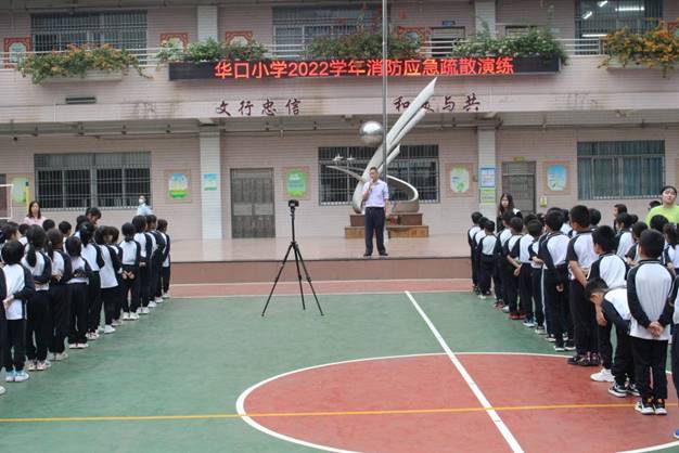 下午4點35分,疏散演練正式開始,所有老師按照《華口小學安全疏散演練活動方案》迅速到位。安全主任李顯亮啟動報警系統(tǒng),宣布演練開始。