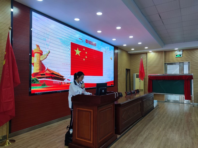 入團儀式在雄壯激昂的國歌聲中拉開帷幕。