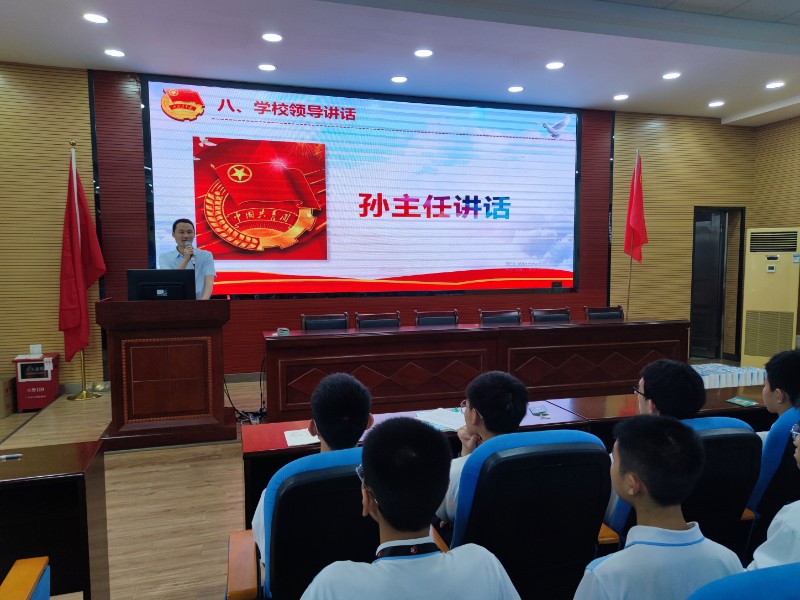 德育處副主任孫磊在入團儀式上對新團員提出希望和要求,希望廣大團員青年志存高遠,努力成長成才,讓青春在黨和人民最需要的地方綻放絢麗之花。