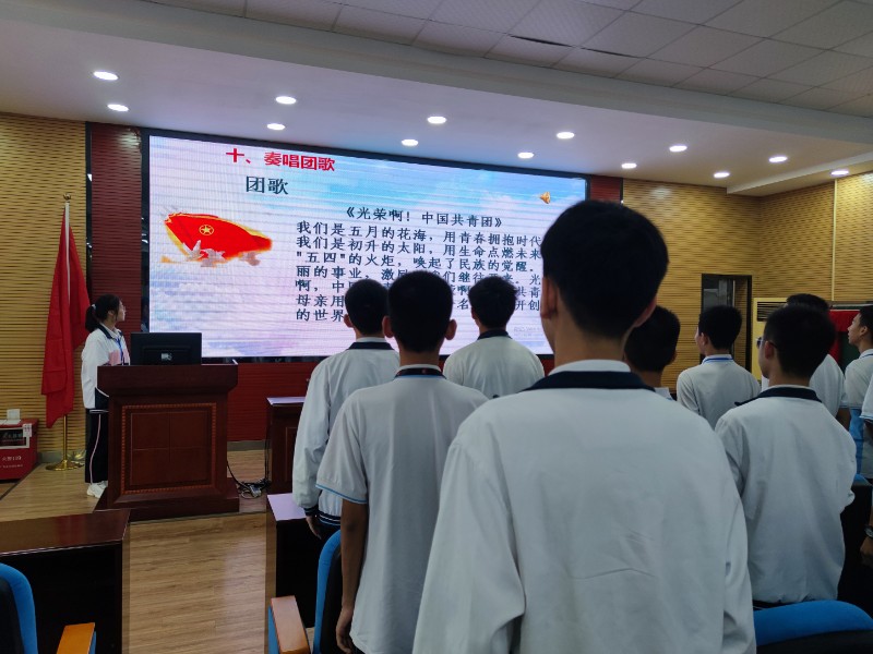洪亮的國歌聲后,團委副書記李芷玲公布新團員名單,并為新團員頒發(fā)了團徽,組織開展新團員入團宣誓、團課之學(xué)習(xí)團員義務(wù)與權(quán)利、新團員代表發(fā)言、老團員代表發(fā)言等環(huán)節(jié)。
