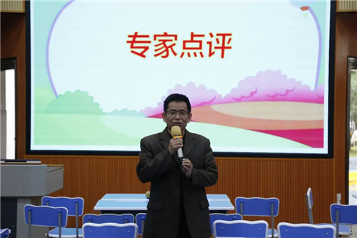 兩節(jié)課后,就是老師們翹首以盼的專家點評。李劍平老師對兩節(jié)課給予了中肯的點評,充分肯定兩位老師能基于新課程標(biāo)準(zhǔn),創(chuàng)設(shè)真實有效的情境,精心設(shè)計教學(xué)實踐活動,使課堂教學(xué)精彩紛呈,亮點迭出。潘玉書主任則從以生為本的角度來點評,大力表揚兩位老師能充分調(diào)動學(xué)生學(xué)習(xí)的積極性,激發(fā)學(xué)生想象力;善用小組合作的學(xué)習(xí)方式進(jìn)行自主探究,交流展示,鍛煉學(xué)生能力。胡改詠院長以“春潮泛暖,煙雨朦朧,校園花開,最美課堂!”一句充滿詩情畫意的話高度。最后何志武主任對本場活動進(jìn)行了總結(jié),他感謝學(xué)校為教師成長搭建的平臺,感謝三位專家的精彩點評。