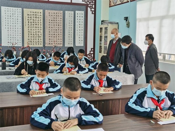 專家們行走在校園之間,負(fù)責(zé)解說(shuō)的老師向檢查組詳細(xì)介紹了該校今年新竣工及投入使用的綜合樓——知行樓的建設(shè)情況以及學(xué)校文化的發(fā)展凝練。改善后的校園環(huán)境讓人耳目一新,綠化及美化后的校園環(huán)境干凈整潔,濃厚的校園文化處處彰顯著“促進(jìn)師生全面和諧發(fā)展”的辦學(xué)理念。在特色辦學(xué)展示環(huán)節(jié),板芙中學(xué)展示了學(xué)校的大課間活動(dòng)及漢服表演、合唱、書(shū)法等項(xiàng)目,整個(gè)活動(dòng)井然有序,孩子們充滿朝氣活力的精神面貌贏得了各位領(lǐng)導(dǎo)、專家的贊賞。資料檢查組成員按照目標(biāo)管理評(píng)估細(xì)則從對(duì)學(xué)校規(guī)劃落實(shí)、校園文化建設(shè)、教師綜合素養(yǎng)培育等方面,進(jìn)行查閱資料,檢查學(xué)校一年來(lái)的整體教育教學(xué)成果。