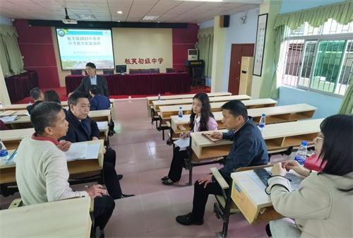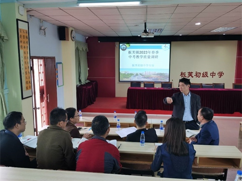 為促進(jìn)學(xué)校教育教學(xué)質(zhì)量穩(wěn)步提升,實(shí)現(xiàn)中考新的突破,2月7日上午,板芙鎮(zhèn)教育和體育事務(wù)中心主任謝柳青率隊(duì)蒞臨板芙初級(jí)中學(xué)調(diào)研指導(dǎo)2023年中考備考教學(xué)工作。該校校長(zhǎng)吳勇明、教學(xué)副校長(zhǎng)王冰、初二、初三年級(jí)蹲點(diǎn)行政、年級(jí)組長(zhǎng)、中考科目備課組長(zhǎng)以及鎮(zhèn)內(nèi)兄弟學(xué)校負(fù)責(zé)畢業(yè)班的蹲點(diǎn)行政、年級(jí)組長(zhǎng)等30余人參加活動(dòng)。