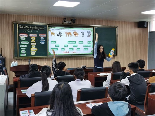 翌日,開展現(xiàn)場(chǎng)送課交流活動(dòng)。板芙初級(jí)中學(xué)的3名骨干教師分別為湯溪學(xué)校的學(xué)子送上了3節(jié)展示課。英語骨干教師鐘媚展示的是《Why do you like pandas?》。她通過創(chuàng)設(shè)動(dòng)物園情景,將零散的教學(xué)活動(dòng)統(tǒng)一在“設(shè)計(jì)動(dòng)物園參觀路線并說明原因”的大任務(wù)中,借助生動(dòng)形象的圖片、契合主題的動(dòng)畫和相關(guān)動(dòng)物的聲音,幫助學(xué)生學(xué)習(xí)動(dòng)物名詞和形容詞,突破難詞發(fā)音、名詞單復(fù)和形容詞感情色彩。整個(gè)教學(xué)過程,師生互動(dòng),很好地完成了教學(xué)目標(biāo)。數(shù)學(xué)科組長(zhǎng)向光榮老師帶來一節(jié)八年級(jí)《平行四邊形的判定》,她帶領(lǐng)同學(xué)們?cè)诰唧w圖形中落實(shí)判定的應(yīng)用以及數(shù)學(xué)幾何語言的表達(dá),深入淺出,通過學(xué)生自主探究活動(dòng),充分地把課堂交給了學(xué)生,發(fā)揮了學(xué)生的主體作用。