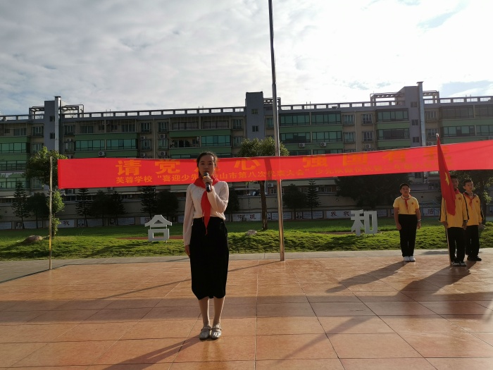 校少工委主任翟軍校長(zhǎng)作熱情洋溢的致辭。他對(duì)新入隊(duì)的隊(duì)員表示熱烈的祝賀,并提出殷切希望:努力學(xué)習(xí),奮勇拼搏,做最好的自己,為紅領(lǐng)巾爭(zhēng)光,為學(xué)校添彩?!皬?qiáng)國(guó)有你們,祖國(guó)放心;芙蓉有你們,學(xué)校欣慰。”他激勵(lì)全體隊(duì)員聽(tīng)黨話(huà)、感黨恩、跟黨走,校長(zhǎng)的話(huà)讓隊(duì)員們心潮澎湃,也深受鼓舞,更感肩上的責(zé)任重大。