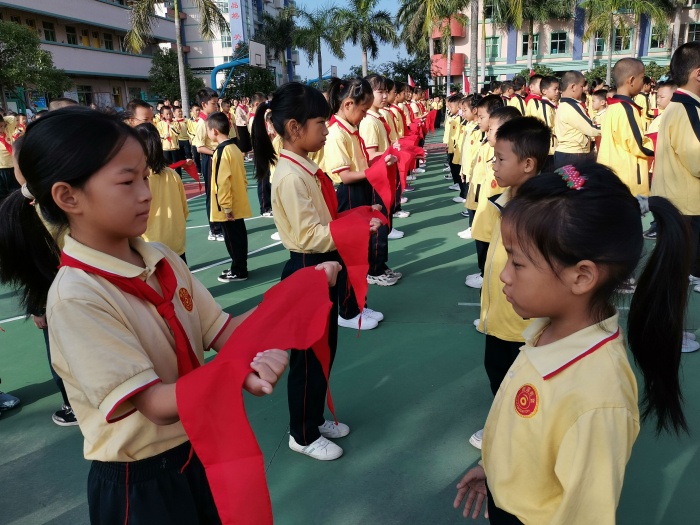 10月18日上午,碧空如洗,云淡風(fēng)輕,迎著清晨明媚的陽(yáng)光,為慶祝中華人民共和國(guó)成立72周年,激發(fā)少先隊(duì)員的愛(ài)國(guó)主義情感,增強(qiáng)集體榮譽(yù)感,芙蓉學(xué)校舉行了“請(qǐng)黨放心,強(qiáng)國(guó)有我——喜迎少先隊(duì)中山市第八次代表大會(huì)”少先隊(duì)微儀式暨二年級(jí)新隊(duì)員入隊(duì)儀式活動(dòng)。