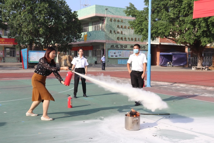 最后,鐘教官還給該校的全體老師進行公共安全消防知識培訓(xùn),讓老師們熟知消防相關(guān)知識,熟練掌握滅火器的使用方式。