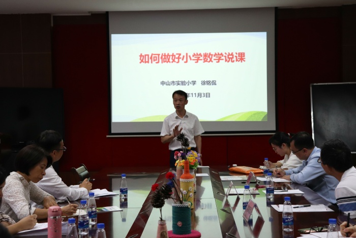 四位老師說課結束后,中山市實驗小學徐銘侃校長對四位教師的說課進行了點評,并給各位老師進行了一場《如何做好小學數(shù)學說課》的講座。徐校長的一席話,讓在場的各位老師受益匪淺。