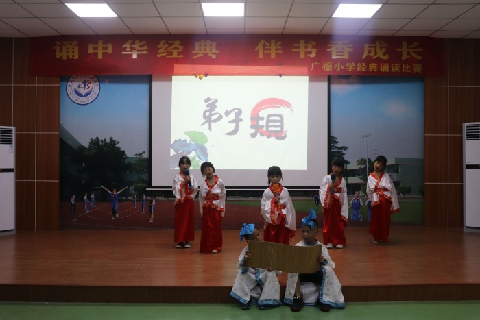 為豐富校園文化生活,營造一個(gè)健康、向上的學(xué)習(xí)氛圍,全面提高廣大少年兒童學(xué)習(xí)經(jīng)典,感悟經(jīng)典的能力,也為了培養(yǎng)學(xué)生熱愛祖國語言文字的情感,提高學(xué)生的語文素養(yǎng),同時(shí)也為了迎接國慶中秋,9月30日,廣福小學(xué)舉行了“誦中華經(jīng)典 伴書香成長”經(jīng)典誦讀比賽暨迎國慶中秋活動(dòng)。