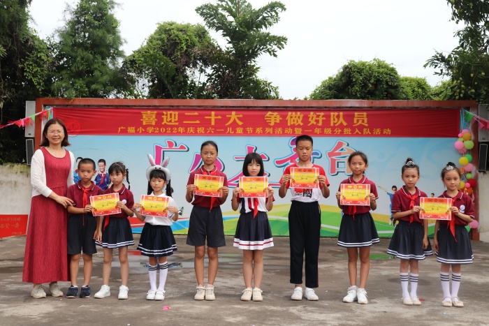 5月31日,在黨的二十大即將召開和慶祝中國(guó)共產(chǎn)主義青年團(tuán)成立100周年,廣福小學(xué)全校師生歡聚一堂,在學(xué)校操場(chǎng)舉行“喜迎二十大,爭(zhēng)做好隊(duì)員”慶?!傲弧眱和?jié)系列活動(dòng),參加本次活動(dòng)的有廣福小學(xué)全校師生、家長(zhǎng)代表以及板芙鎮(zhèn)政府關(guān)心下一代工作委員會(huì)的梁炳軒先生和陳錦添先生。