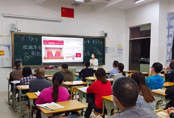 各班家長會上,班主任和家長們一起學習了家庭教育、安全教育、“學習強國”平臺、“雙減”政策等內容。在“學習強國”交流分享環(huán)節(jié),老師和家長代表分享了自己的學習經(jīng)驗,有的精心準備了課件講解,有的開展答題比賽,有的現(xiàn)場指導,看視頻、聽新聞、學理論,讓“學習強國”更接地氣、更有活力、更有溫度,深入人心。