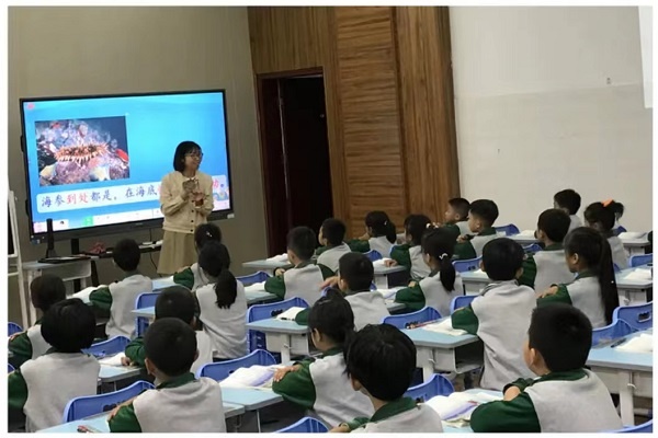 湖洲小學鄭詩婷老師也帶來了她獨出心裁的展示。鄭老師以創(chuàng)設成為小導游的情境為切入點,引導孩子感受西沙群島的美麗與富饒,讓孩子在玩中學,寓教于樂。鄭老師循循誘導,充分發(fā)揮了學生的積極性和主動性,課堂氣氛輕松和諧。最后,鄭老師還介紹了西沙群島的歷史背景,讓學生感受到祖國領土完整不可侵犯,從而培養(yǎng)學生的愛國主義情懷。