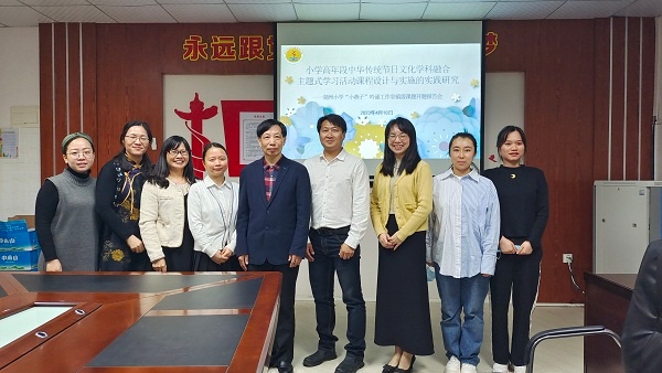 開題報告中。課題主持人何月燕老師通過選題背景、研究框架、思路方法、創(chuàng)新之處及預(yù)期成果五個方面作《小學(xué)高年段中華傳統(tǒng)節(jié)日文化學(xué)科融合主題式學(xué)習(xí)活動課程設(shè)計與實施的實踐研究》報告,并表示將以語文古詩詞文吟誦教學(xué)為線索,充分融合其他學(xué)科,深度挖掘基于學(xué)科融合的中華傳統(tǒng)節(jié)日文化主題式學(xué)習(xí)活動的可能性,構(gòu)建校本中華傳統(tǒng)節(jié)日文化教育教學(xué)新模式。