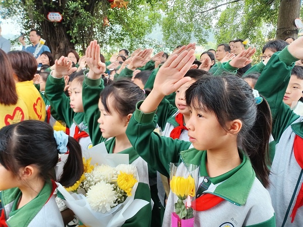 4月4日上午,湖小組織師生代表前往板芙鎮(zhèn)里溪烈士紀(jì)念亭開展開展“清明祭英烈”活動。活動伊始,全體人員肅立,奏唱國歌。嘹亮的國歌在紀(jì)念亭唱響,唱出湖小學(xué)子心中對祖國的認(rèn)同與熱愛。師生代表默哀一分鐘,向抗日志士三鞠躬后列隊向革命烈士獻花,表達對革命先烈的無限哀思。學(xué)生代表表示:革命先烈們?yōu)榱巳嗣竦男腋!业陌矊?,英勇無畏,為國捐軀,我們應(yīng)緬懷先烈、銘記歷史,珍惜現(xiàn)在來之不易的幸福生活。堅定理想信念,繼承先烈遺志,努力學(xué)習(xí),奮發(fā)圖強,為譜寫祖國繁榮發(fā)展的新篇章貢獻自己的一份力量。