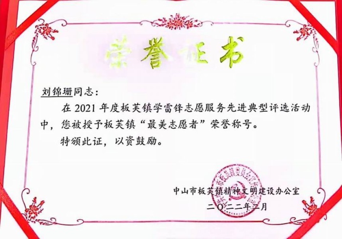 近日,板芙鎮(zhèn)2021年度學(xué)雷鋒志愿服務(wù)先進(jìn)典型名單出爐,經(jīng)各部門(mén)單位、村(社區(qū))、學(xué)校審核推薦、評(píng)審小組評(píng)定等程序,最終,深灣小學(xué)兩名義工家長(zhǎng)獲評(píng)2021年度“板芙鎮(zhèn)最美志愿者”(全鎮(zhèn)僅8位)。