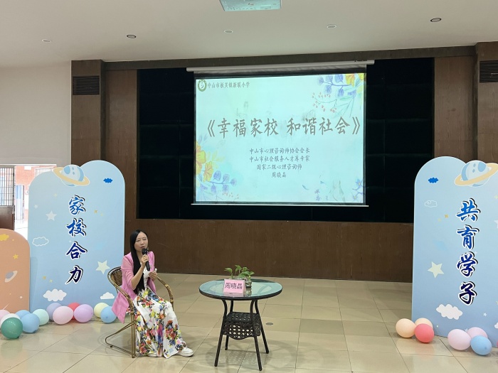 為了更好地推進《中華人民共和國家庭教育促進法》的落實與實施,幫助家長營造良好的家庭教育氛圍,助力完善家校合作體系,10月13日,新聯(lián)小學(xué)德育處聯(lián)手“娜么美”班主任工作室,組織開展以“家校合力謀教育 共育學(xué)子促成長”為主題的班主任沙龍活動?;顒友埩酥猩绞行睦碜稍儙焻f(xié)會會長、中山市社會服務(wù)人才庫專家、首席心理咨詢師周曉晶進行專題講座。板芙鎮(zhèn)教育和體育事務(wù)中心德育專干魏先海,板芙鎮(zhèn)四聯(lián)村、祿圍村、板尾村的村委代表們,各班班主任和家長代表們參加了本次活動。