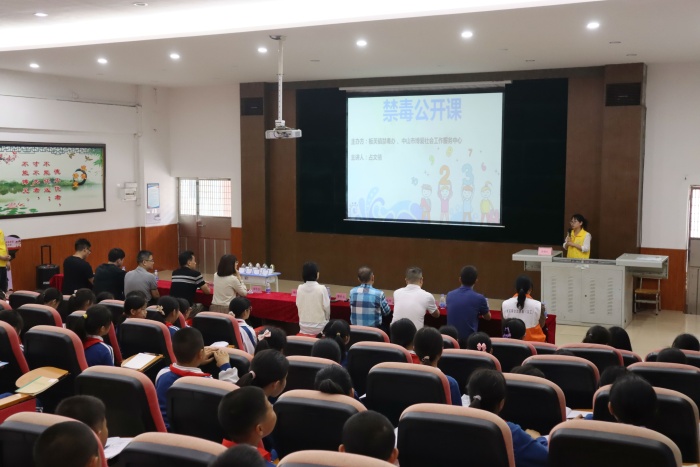 板芙鎮(zhèn)禁毒辦 、中山市博愛社會(huì)工作服務(wù)中心社工占文倩針對(duì)學(xué)生心理、生理特點(diǎn),以講故事、觀看宣傳影片的方式,淺顯易懂地向廣大師生講解了“什么是毒品、什么是新型毒品”等問題。同時(shí),為了增強(qiáng)宣傳教育的效果,還通過演一演戒斷反應(yīng)等直觀形式,向?qū)W生們宣傳吸食毒品對(duì)個(gè)人、家庭、社會(huì)造成的危害,引導(dǎo)教育學(xué)生珍愛生命、遠(yuǎn)離毒品。講座內(nèi)容貼近學(xué)生生活實(shí)際,富有知識(shí)性、趣味性、教育性,得到廣大師生的一致好評(píng)。