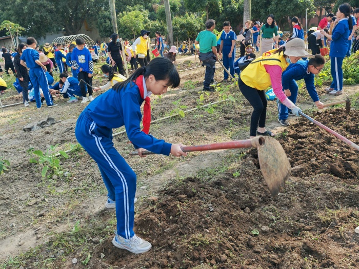 3月10日,在學(xué)校老師的帶領(lǐng)下,家長義工和學(xué)生積極參與到校內(nèi)勞動實(shí)踐基地的種植活動中?;乩餄B透著學(xué)生的好奇,盛滿了學(xué)生的期待,松土、播種、填土,同學(xué)們忙得不亦樂乎,勞動實(shí)踐勞動教育之花悄然盛開。同時,在校外勞動基地——春色滿園花木場,新聯(lián)小學(xué)校長吳肇葵、德育處副主任劉桂英帶領(lǐng)著學(xué)生和家長義工興高采烈地進(jìn)行植樹摘果活動。活動中,家長和孩子們熱情高漲,臉上洋溢著熱情的笑容,他們團(tuán)結(jié)合作,為樹苗培土、澆水,每個環(huán)節(jié)大家都一絲不茍。挖成一個個樹坑,栽下一顆顆樹苗,種下一份份綠色的希望;每一滴汗水,每一鏟泥土,代表著每一個人的奉獻(xiàn)和愛心?;顒蝇F(xiàn)場一片熱火朝天的景象,成為春天又一道美麗的風(fēng)景。