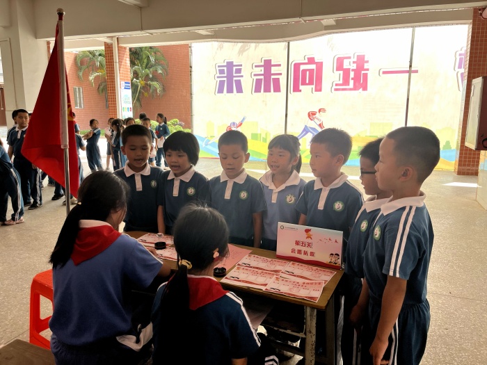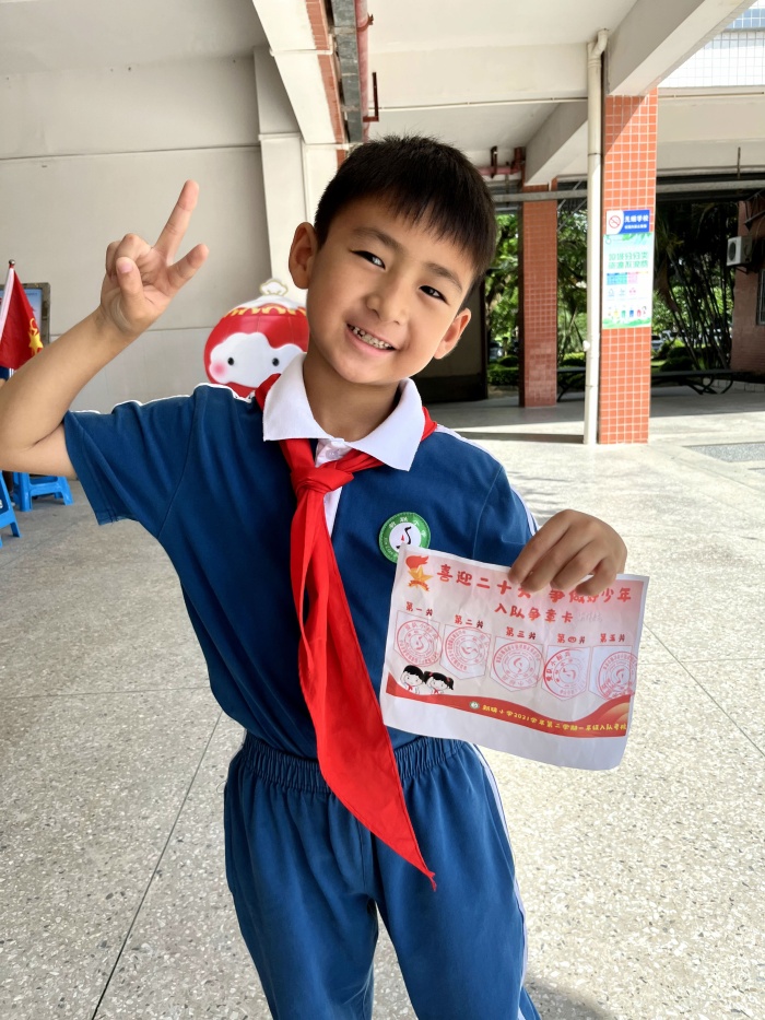 本次闖關(guān)爭章活動共設(shè)5個考核項目,包含了“六知”“六會”等少先隊知識。一年級的預(yù)備隊員要通過層層考核集齊5個“愛隊小標(biāo)兵”獎?wù)?,才能成功通過本次入隊考核???!他們認(rèn)真佩戴紅領(lǐng)巾的身影真令人佩服。呼號時堅定的動作,無不展示著他們對少先隊的向往。行隊禮時那嚴(yán)肅的表情和規(guī)范的姿勢,都在告訴我們,成為一名少先隊員是一件無比自豪的事情。預(yù)備隊員們一關(guān)一關(guān)闖過,一步一步成功,漸漸有了小小少先隊員的模樣。