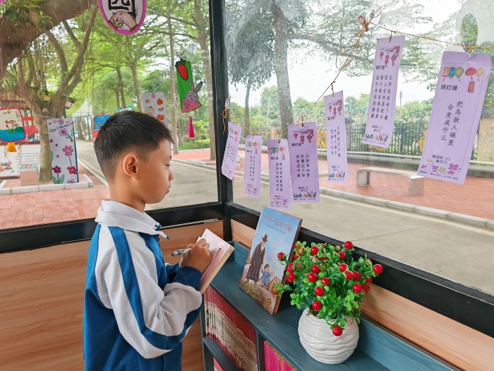 除此之外,新聯(lián)小學以讀書節(jié)為契機,組織各班學生到毓華園品讀經(jīng)典。瞧,微微蹙起的眉頭、嚴肅認真的面容、平靜愉悅的神態(tài)……這些都是同學們沉浸書海時的最美模樣。
