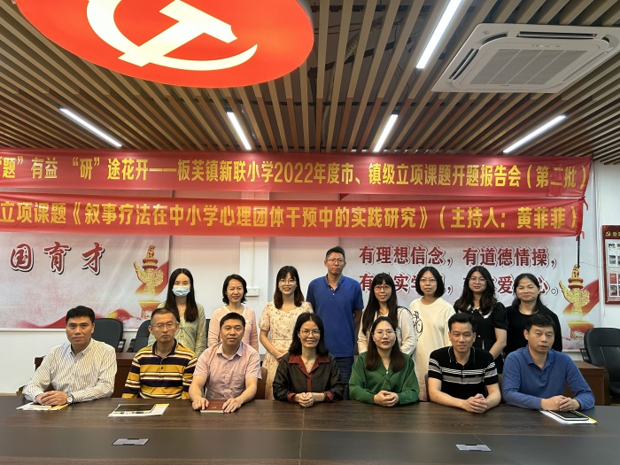 科研賦能,從“心”出發(fā)。為扎實(shí)推進(jìn)新聯(lián)小學(xué)心理健康教育工作,切實(shí)提升教師教育科研水平,加強(qiáng)課題研究與教育教學(xué)活動(dòng)的有機(jī)結(jié)合,促進(jìn)心育工作成效再上新臺階,4月6日,新聯(lián)小學(xué)組織開展了2022年度鎮(zhèn)級立項(xiàng)課題《敘事療法在中小學(xué)心理團(tuán)體干預(yù)中的實(shí)踐研究》開題報(bào)告會(huì)暨鄒麗瓊名師工作室活動(dòng)。本次開題報(bào)告會(huì)邀請了中山市教育研究室、心理健康正高級教師梁劍玲蒞臨指導(dǎo),板芙鎮(zhèn)教育和體育事務(wù)中心張運(yùn)生、孫軍輝和胡新國三位教研員,新聯(lián)小學(xué)校長吳肇葵、新聯(lián)小學(xué)行政代表及課題組成員出席了本次活動(dòng)?! ?br/> 會(huì)上,主持人黃菲菲老師對課題《敘事療法在中小學(xué)心理團(tuán)體干預(yù)中的實(shí)踐研究》作開題報(bào)告。黃老師緊密圍繞課題研究背景與意義、研究框架、思路方法、創(chuàng)新之處、預(yù)期成果、研究基礎(chǔ)和條件保障六個(gè)方面進(jìn)行闡述。