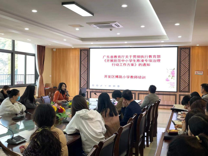 為有效預(yù)防校園欺凌事件,維護(hù)學(xué)生身心健康,保障學(xué)校安全,12月13日下午,開發(fā)區(qū)博凱小學(xué)召開了“預(yù)防校園欺凌,共建和諧校園”專題培訓(xùn)會(huì)。
