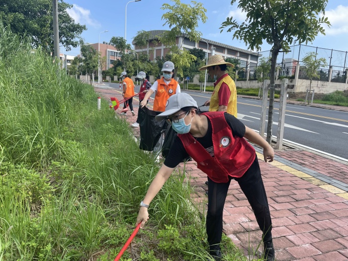 博凱小學(xué)唐秉晶校長(zhǎng)、學(xué)校行政、黨團(tuán)志愿者及親子義工部分成員共50余人,分六個(gè)小組,志愿清掃校園,重點(diǎn)清理了校園內(nèi)外及周邊的衛(wèi)生黑點(diǎn)、難點(diǎn),尤其是易造成安全事故的濕滑青苔。盡管天氣炎熱,但大家干勁十足,熱情高漲,在大家的努力,校園和周邊環(huán)境得到了進(jìn)一步的改善。