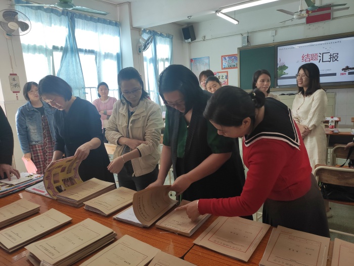 首先,專家一一查閱課題研究過程性材料和成果性材料。專家們一邊做著詳實的記錄,一邊向課題組成員進行現(xiàn)場了解問詢。接著,由課題主持人黎寧老師向驗收專家組及與會人員作結題報告,黎寧老師從課題提出的背景、課題的核心界定、課題研究的內(nèi)容、研究目標、預期計劃執(zhí)行情況、研究成果、課題研究的特色、主要創(chuàng)新之處、課題展望等方面進行闡述,思路清晰、深入淺出的講述令在場眾人對課題開展情況有了更全面的了解,得到了與會專家的一致肯定。
