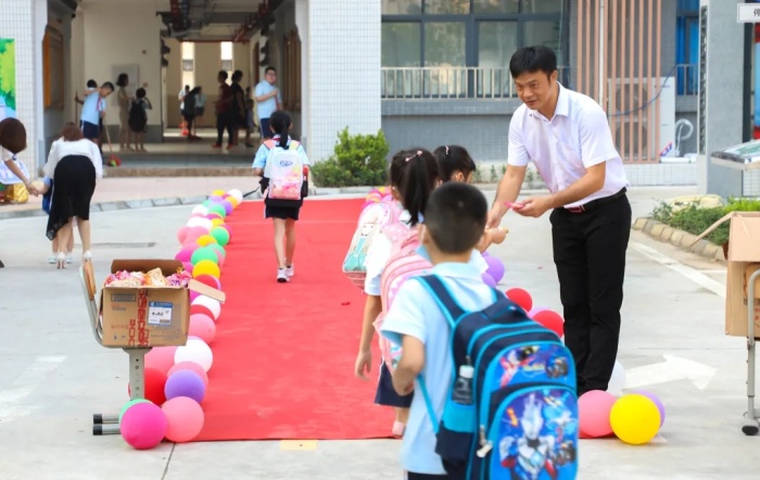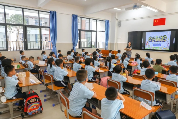 隨后,安堂小學(xué)迎來了一年級(jí)新生,同學(xué)們以熱烈的掌聲迎接新的朋友們。在今天這個(gè)特殊的日子里,在我們美麗的校園里,又多了一張張稚嫩的笑臉,他們特別地激動(dòng)和興奮,因?yàn)閺慕裉炱?,他們將度過六年愉快的小學(xué)生活,融入到安堂小學(xué)這個(gè)溫馨快樂的大家庭里,一起成長(zhǎng)!