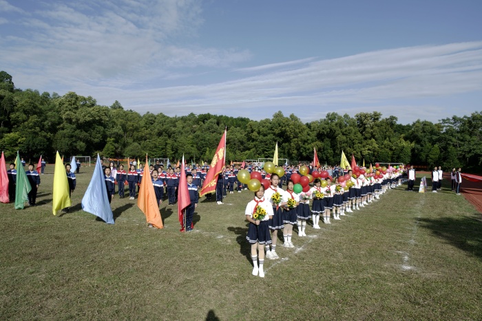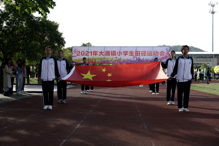 在秋日的艷陽之中,旗北小學(xué)田徑場彩旗飄揚(yáng),彩旗隊(duì)、鮮花隊(duì)以及各學(xué)校運(yùn)動(dòng)員方陣依次走過主席臺(tái)。列隊(duì)完畢,在場全體人員奏唱國歌,舉行莊嚴(yán)的升旗儀式。隨后,大涌鎮(zhèn)黨委委員郭艷艷同志致開幕詞,對參加本次運(yùn)動(dòng)會(huì)的運(yùn)動(dòng)員、裁判員以及相關(guān)工作人員提出了要求和希望,并預(yù)祝本屆運(yùn)動(dòng)會(huì)圓滿成功!接著運(yùn)動(dòng)員、裁判員代表宣誓,最后郭艷艷同志宣布大涌鎮(zhèn)第41屆小學(xué)生田徑運(yùn)動(dòng)會(huì)開幕。