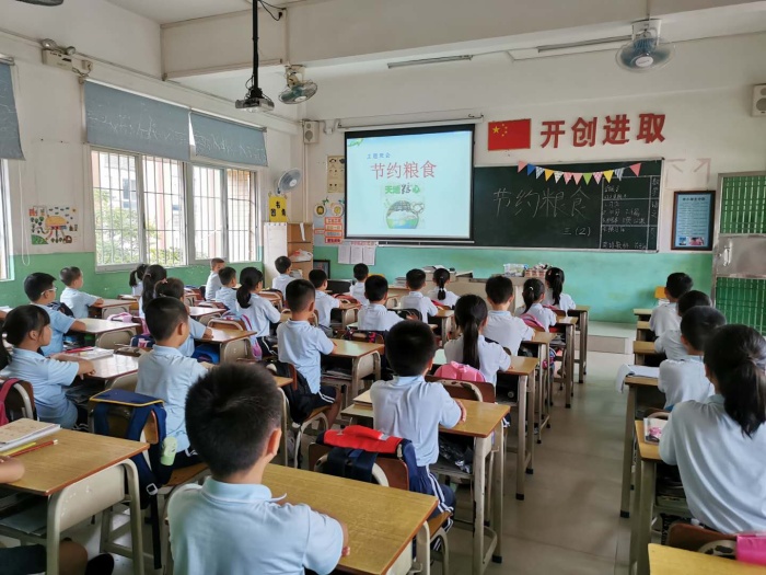 在班會(huì)上,班主任從古詩(shī)《憫農(nóng)》入手,帶領(lǐng)學(xué)生重溫糧食從播種、生長(zhǎng)、收獲到加工的過(guò)程,讓學(xué)生認(rèn)識(shí)到糧食的來(lái)之不易。中國(guó)人用世界7%左右的耕地種植糧食,養(yǎng)育世界22%的人口。讓學(xué)生知道2018年以來(lái),世界上多個(gè)國(guó)家遭遇嚴(yán)重的糧食危機(jī),只要大家每個(gè)人每天節(jié)約一粒米,可以養(yǎng)活3.5萬(wàn)人,這是多么驚人的數(shù)字!在課堂上,老師還組織同學(xué)們討論節(jié)約糧食的方法,如吃多少盛多少、外出吃飯吃不完要打包、要和身邊的朋友宣傳節(jié)約糧食、光盤是光榮的事等。最后,班主任向全體學(xué)生提出倡議——勤儉節(jié)約是中華民族的傳統(tǒng)美德,雖然現(xiàn)在生活好了,但仍然不能丟掉這種美德。希望全體同學(xué)都能愛(ài)惜糧食,節(jié)約糧食。