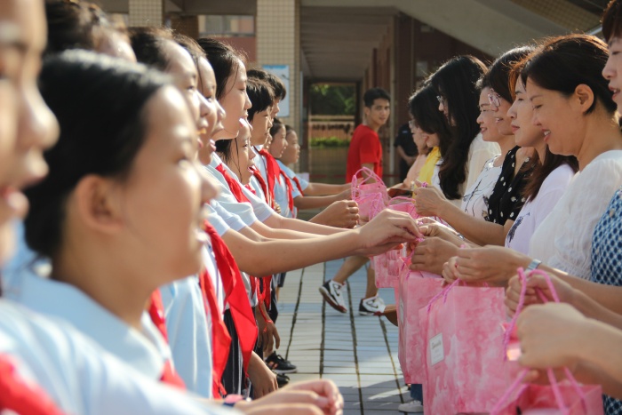 為了迎接一年一度的教師節(jié),旗北小學(xué)全體行政和體藝科組提前精心策劃,給旗北小學(xué)全體教師送上最真摯的祝福。上午7時20分,教學(xué)樓樓梯鋪上了鮮艷的紅地毯,裝點上節(jié)日的氣球,學(xué)生每人手持鮮花,靜候旗北小學(xué)教師的到來。在“老師,我想對您說”的展板上,有學(xué)生寫的祝福語,有學(xué)生親手繪畫卡通版的教師照,盡情地展現(xiàn)旗北教師活潑的另一面,同時也為全體教師送去了節(jié)日的驚喜。每位教師在展板前駐足觀看,臉上綻放喜悅的笑容。隨后,各位教師走上紅毯,兩旁學(xué)生送出節(jié)日的祝福,送出鮮艷的花朵和合影留念,讓全體教師驚喜滿滿。