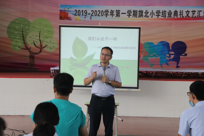 首先,由國家高級家庭教育講師賴立章老師給全體新生家長進行題為《我們從此不一樣》的家庭教育講座。賴老師從認識旗北小學的基本情況、家庭教育的重要性、一年級小學生容易出現的問題以及如何成為一名優(yōu)秀的家長等四個方面展開講座,讓家長清楚認識自己的孩子,要以身作則,相信學校和老師,關注孩子的學習和成長,教會孩子學習方法,學會自我保護。