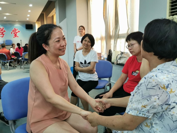 一系列有趣的游戲過后,進(jìn)入了整場(chǎng)團(tuán)康活動(dòng)的高潮。每位老師輪流坐在了小組圍成的圓圈,手握手,與每位老師對(duì)視10秒鐘,說出平時(shí)從未說過的真情實(shí)語。眼睛是心靈的窗戶,在對(duì)視的10秒鐘中,產(chǎn)生了極大的魔力。大家深情款款地向?qū)Ψ絻A訴最真實(shí)的感受,表達(dá)最真摯的情感,送出最真誠的祝福。一雙雙淚眼婆娑的眼睛蘊(yùn)含著大家在旗北共事多年的情誼,三言兩語難以全部訴說,化作一個(gè)個(gè)溫暖的擁抱。