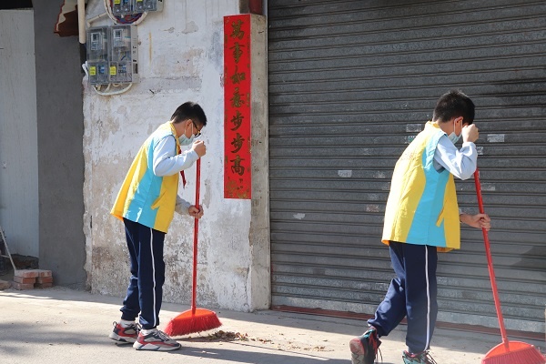 下午3點(diǎn),志愿者和隊(duì)員們?cè)诖箨?duì)輔導(dǎo)員李楚娟老師的帶領(lǐng)下,走進(jìn)南村老人院、旗南村委、南村市場(chǎng)周邊進(jìn)行大清潔活動(dòng)?;顒?dòng)期間,大家分工合作,不怕臟,不怕累,團(tuán)結(jié)一心,認(rèn)真地打掃地上的每一個(gè)角落,經(jīng)過(guò)一個(gè)多小時(shí)的努力,整個(gè)街道煥然一新,大家把干凈與美好留給了他人。少先隊(duì)員們?cè)诤霌P(yáng)了新時(shí)代雷鋒精神的同時(shí),用行動(dòng)把雷鋒精神在社會(huì)生活中傳播。