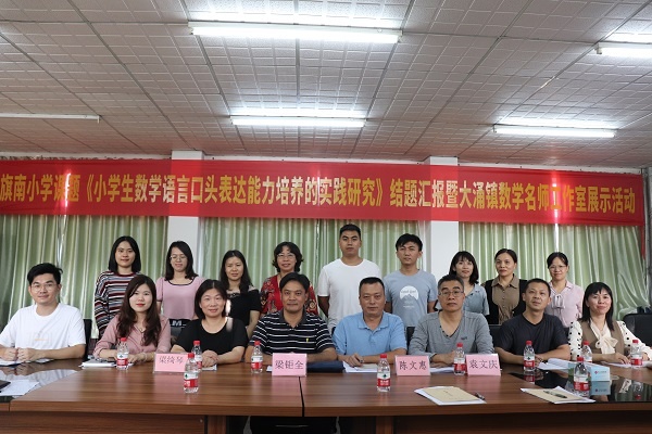 為全面落實旗南小學(xué)“課題引領(lǐng)、以研促教”的教育規(guī)劃,積極推動數(shù)學(xué)科研課題工作的順利開展,2021年11月11日下午,旗南小學(xué)舉行了數(shù)學(xué)課題《小學(xué)生數(shù)學(xué)語言口頭表達能力培養(yǎng)的實踐研究》結(jié)題匯報暨大涌鎮(zhèn)數(shù)學(xué)名師工作室展示活動。大涌鎮(zhèn)教育和體育事務(wù)中心數(shù)學(xué)專干袁文慶老師、名師工作室主持人梁鉅全副校長、旗南小學(xué)梁綺琴校長、名師工作室全體成員共同參加了此次報告會。