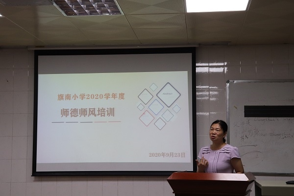 教育為本,教育百端,師德為先。為了進(jìn)一步弘揚(yáng)崇高的師德風(fēng)范,提升師德師風(fēng)水平,2020年9月22日,旗南小學(xué)邀請(qǐng)石岐區(qū)文體教育局德育專干潘志堅(jiān)主任到旗南小學(xué)開展師德師風(fēng)講座,全體教師出席了本次活動(dòng)。