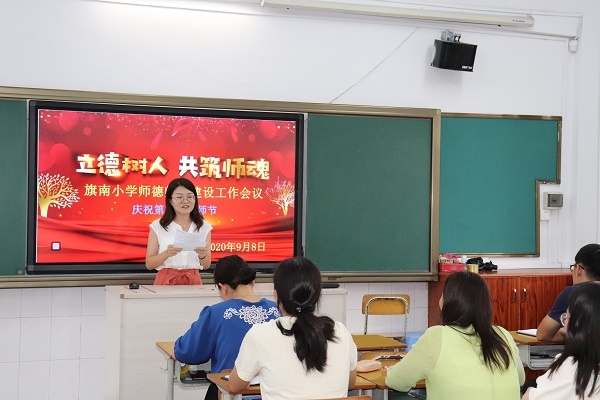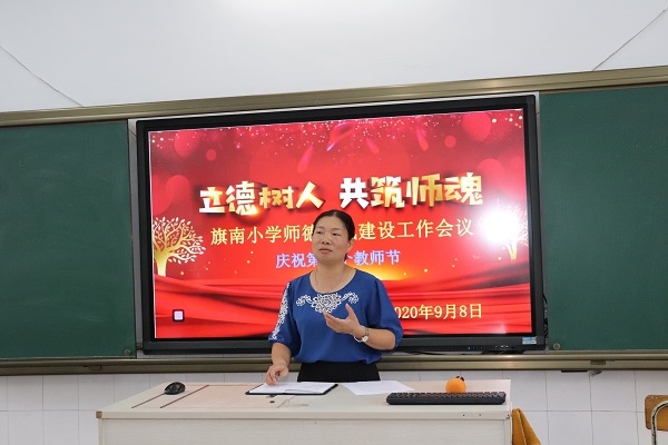 為進(jìn)一步提升師德師風(fēng)建設(shè)水平,努力打造一支師德高尚、業(yè)務(wù)精湛、充滿活力的高素質(zhì)教師隊(duì)伍,2020年9月8日,旗南小學(xué)以第36個(gè)教師節(jié)為契機(jī),開展“立德樹人,共筑師魂”慶教師節(jié)師風(fēng)師德建設(shè)大會(huì),樹立先進(jìn)典型。