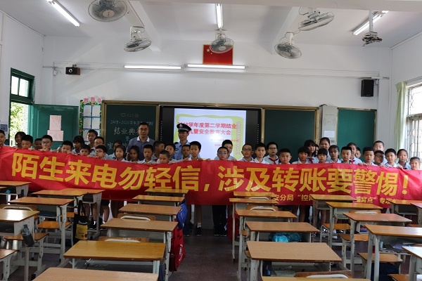 結(jié)業(yè)典禮上,先由各班班主任主持,讓學(xué)生在班上觀看了“2020年交通安全在心中”為主題的交通安全視頻,接著由法制副校長(zhǎng)唐警官利用廣播給全體師生上了一節(jié)精彩的法制教育課。主要圍繞假期交通安全、網(wǎng)絡(luò)安全、防拐騙等方面,結(jié)合近期發(fā)生的校園外安全事故的案例,傳授了一些實(shí)用的安全防護(hù)措施和技巧,讓全體學(xué)生深受教育。通過(guò)講座,學(xué)生們進(jìn)一步增強(qiáng)了法紀(jì)意識(shí),樹(shù)立了遵紀(jì)守法的觀念,培養(yǎng)了學(xué)生良好的行為習(xí)慣,為預(yù)防未成年人犯罪,促進(jìn)學(xué)生健康成長(zhǎng)起到積極的促進(jìn)作用。接下來(lái),學(xué)校領(lǐng)導(dǎo)梁綺琴校長(zhǎng)總結(jié)了一個(gè)學(xué)期以來(lái)師生工作和學(xué)習(xí)情況。在這個(gè)學(xué)期里,在全校師生的共同努力下,同學(xué)們?cè)诘?、智、體、美、勞等方面都取得了可喜的成績(jī)。梁校長(zhǎng)還勉勵(lì)師生在假期多參加有益的文體活動(dòng),多看看課外書(shū)籍,嚴(yán)格執(zhí)行學(xué)校的要求,過(guò)一個(gè)平安、愉快、有意義的暑假。最后表彰一批優(yōu)秀師生,并對(duì)期末考試中,獲得優(yōu)異成績(jī)的同學(xué)頒獎(jiǎng),鼓勵(lì)學(xué)生繼續(xù)努力,爭(zhēng)取更大進(jìn)步。