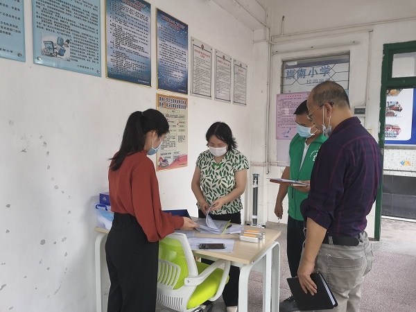 檢查組分三批進行檢查,梁綺琴校長帶領周主任到各個室場檢查防控設施的準備情況,包括校門口,測溫門禁系統(tǒng),健康監(jiān)測點,隔離室,衛(wèi)生室和各班的教室都做了詳細的檢查。孫林強主任帶領張小殷老師和溫醫(yī)生檢查了學校的防控物資情況,包括衛(wèi)生室,飲水機,廁所,各監(jiān)測點,洗水設備等;袁文慶主任帶領余宗瑩老師檢查學校防疫、復學工作的文字資料。通過1個小時的檢查,檢查組的成員充分肯定了旗南小學在防控工作,學生復學的準備工作。認為學校在硬件上各個設施落實到位,防控物資齊全,各項制度健全,文字資料完整。同時也對于一些工作的細節(jié)上提出了建議與改進措施,如警戒線不要太多,防控流程圖具體要標明責任人和電話號碼,文字資料應該更加細化等等。