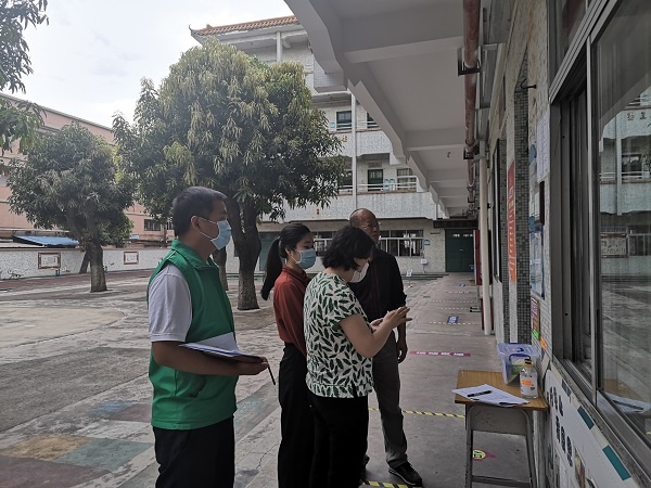 5月9日上午,大涌鎮(zhèn)教育事務指導中心周景照主任,張小殷老師,衛(wèi)生副校長溫永鋒醫(yī)生一同到旗南小學進行2020年春季學期學生返校疫情防控第二、三批學校復檢、驗收工作。
