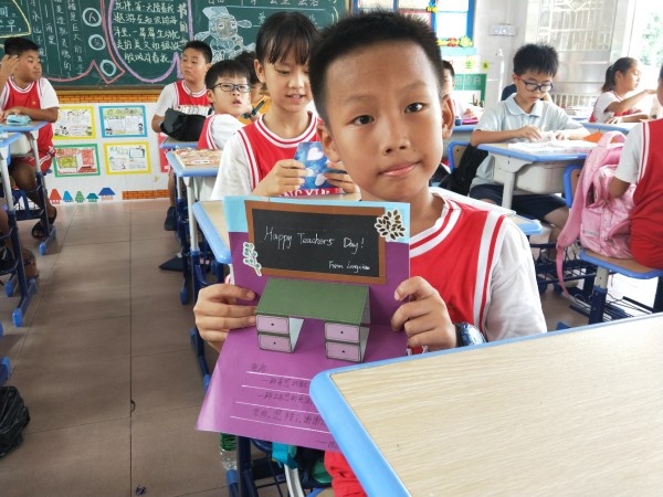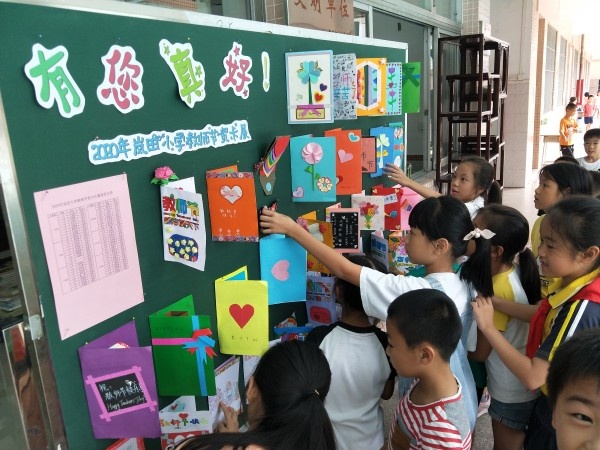 榮譽(yù)室門前,同學(xué)們精心制作的“賀卡墻”為教師節(jié)增添了色彩。一張張五彩斑斕的賀卡,一幅幅生動逼真的圖案,一句句想對老師說的心理話,充分發(fā)揮了兒童的奇妙想象,展現(xiàn)了孩子們對老師崇高的敬意,一筆一畫,將真誠的情誼全部融進(jìn)了小小的卡片里。