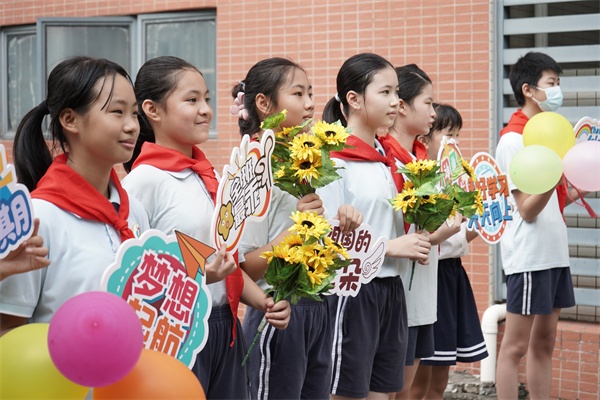 沐浴著秋日的朝陽,高年級(jí)的哥哥姐姐們也早早到校,搬桌椅、掛氣球、布置會(huì)場(chǎng)、列隊(duì)歡迎……為新生們的到來做足準(zhǔn)備。